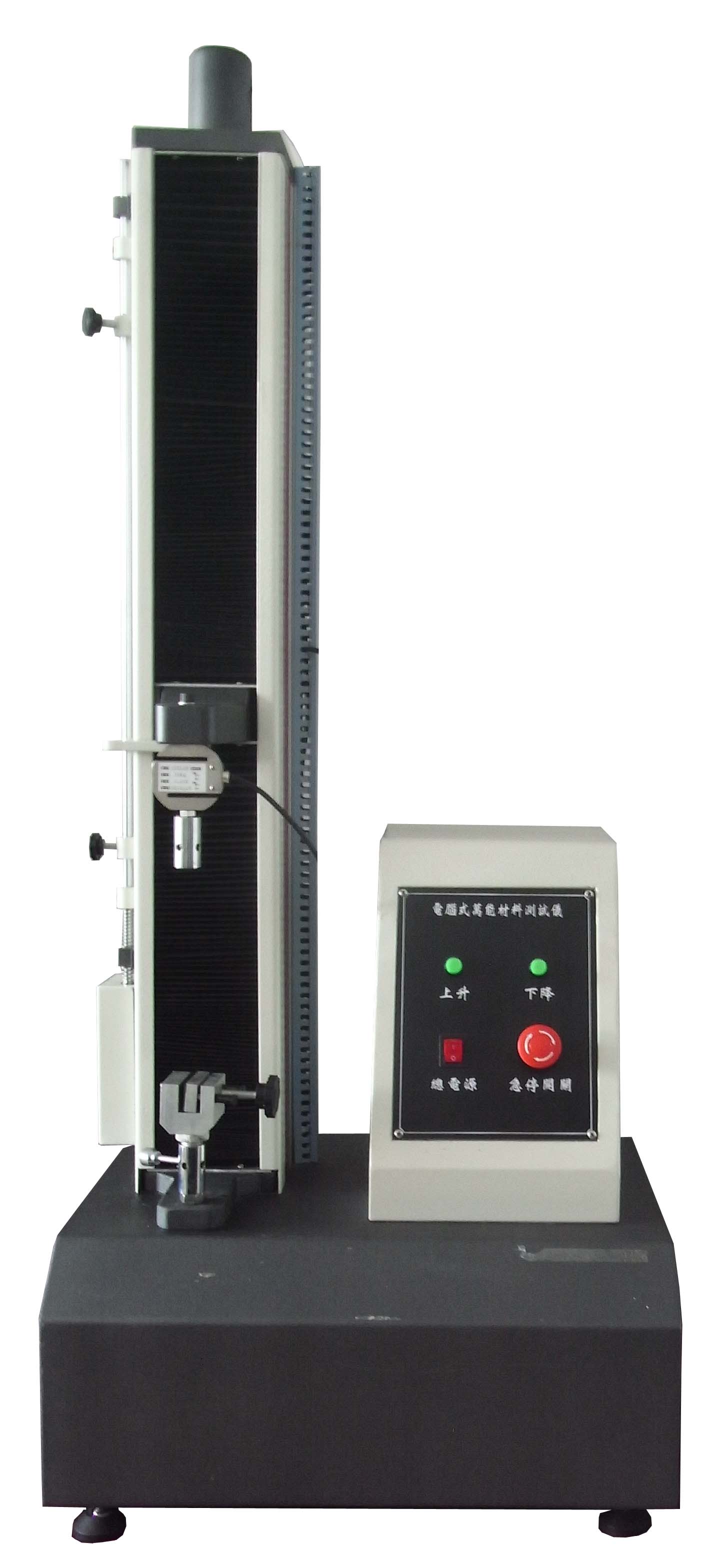 一.拉力試驗機的力量值校正:進入計算機程序后于打開校正界面,按測試開始,取一標準重量砝碼輕掛于上夾具連接座,記錄計算機顯示力量值,并計算與標準重量砝碼之差,誤差應不超出±1%。 二.拉力試驗機的速度校正方法: 1.先記錄機臺橫擔之初始位置,在控制面板上選擇速度值(使用標準直鋼尺量測橫擔行程). 2 .起動機臺的同時電子秒表開始計時一分鐘,秒表到達時間的同時按下機臺停止鍵,根據秒表的時間,記錄橫擔行程值即為每分鐘之速率(mm/min),觀察橫擔行程值與直鋼尺之差,并計算橫擔行程誤差值,應不超出±1%.
